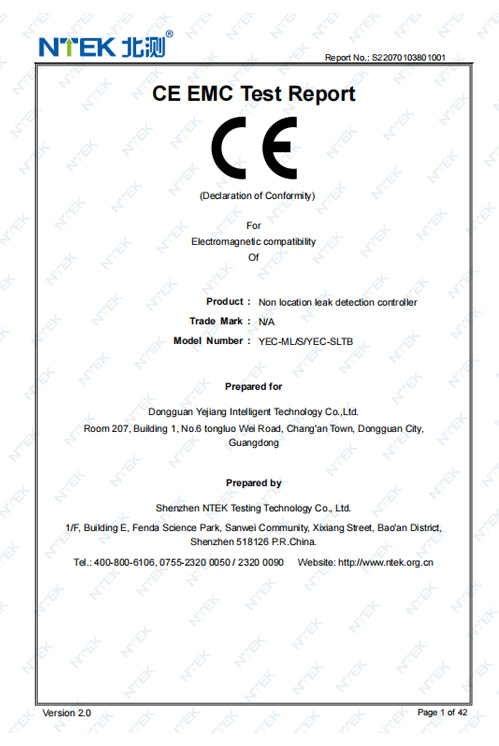 不定位測漏控制器CE證書